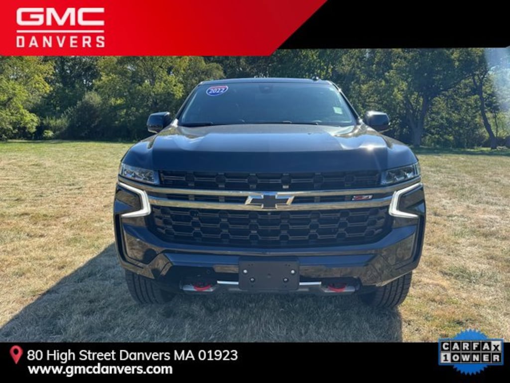 GMC Danvers is proud to present you with another True Market Priced Pre-Owned Vehicle. This 2022 Chevrolet Tahoe Z71 is loaded with the following Factory Options: Advanced Trailering Package (Hitch Guidance w/Hitch View, Integrated Trailer Brake Controller, and Smart Trailer Integration Indicator), Driver Alert Package (Lane Change Alert w/Side Blind Zone Alert and Rear Cross Traffic Alert), License Plate Front Mounting Package, Luxury Package (2nd Row Pwr Release 60/40 Split-Folding Bench Seat, 3rd Row 60/40 Power-Folding Split-Bench Seat, HD Surround Vision, Heated 2nd Row Outboard Seats, Heated Steering Wheel, Memory Settings, Outside Heated Power-Adjustable Mirrors, Power Tilt & Telescopic Steering Column, and Rear Pedestrian Alert), Max Trailering Package (Extra Capacity Cooling System), and Preferred Equipment Group 2Z7 (1st & 2nd Row Color-Keyed Carpeted Floor Mats, 2-Speed Active Electronic AutoTrac Transfer Case, Auto-Dimming Inside Rear-View Mirror, Automatic Stop/Start, Black Tubular Assist Steps, Bose 9-Speaker Stereo Audio System Feature, Bright Front & Rear Door Sill Plates, Color-Keyed Carpeting Floor Covering, Driver & Front Outboard Passenger Airbags, Enhanced Driver Information Center, Floor Console w/Storage Area, Front High-Approach Angle Fascia, Hands-Free Rear Power Programmable Liftgate, Hill Descent Control, Infotainment Display, Leather-Wrapped Steering Wheel, LED Daytime Running Lamps, Memory Settings for Driver, Red Horizontal-Mounted Recovery Hooks, Remote Start, SiriusXM Radio w/360L, Start/Stop System Disable Button, Universal Home Remote, and Wireless Charging) Advanced Trailering Package (Hitch Guidance w/Hitch View, Integrated Trailer Brake Controller, and Smart Trailer Integration Indicator), Driver Alert Package (Lane Change Alert w/Side Blind Zone Alert and Rear Cross Traffic Alert), License Plate Front Mounting Package, Luxury Package (2nd Row Pwr Release 60/40 Split-Folding Bench Seat, 3rd Row 60/40 Power-Folding Split-Bench Seat, HD Surround Vision, Heated 2nd Row Outboard Seats, Heated Steering Wheel, Memory Settings, Outside Heated Power-Adjustable Mirrors, Power Tilt & Telescopic Steering Column, and Rear Pedestrian Alert), Max Trailering Package (Extra Capacity Cooling System), Preferred Equipment Group 2Z7 (1st & 2nd Row Color-Keyed Carpeted Floor Mats, 2-Speed Active Electronic AutoTrac Transfer Case, Auto-Dimming Inside Rear-View Mirror, Automatic Stop/Start, Black Tubular Assist Steps, Bose 9-Speaker Stereo Audio System Feature, Bright Front & Rear Door Sill Plates, Color-Keyed Carpeting Floor Covering, Driver & Front Outboard Passenger Airbags, Enhanced Driver Information Center, Floor Console w/Storage Area, Front High-Approach Angle Fascia, Hands-Free Rear Power Programmable Liftgate, Hill Descent Control, Infotainment Display, Leather-Wrapped Steering Wheel, LED Daytime Running Lamps, Memory Settings for Driver, Red Horizontal-Mounted Recovery Hooks, Remote Start, SiriusXM Radio w/360L, Start/Stop System Disable Button, Universal Home Remote, and Wireless Charging), 10-Way Power Driver & Passenger Seat Adjusters, 3.23 Rear Axle Ratio, 3rd row seats: split-bench, 4-Wheel Disc Brakes, 9 Speakers, ABS brakes, Air Conditioning, All-Weather Cargo Mat (LPO), Alloy wheels, AM/FM radio: SiriusXM with 360L, Apple CarPlay/Android Auto, Auto High-beam Headlights, Auto-dimming Rear-View mirror, Automatic temperature control, Brake assist, Bumpers: body-color, Compass, Delay-off headlights, Driver door bin, Driver vanity mirror, Dual front impact airbags, Dual front side impact airbags, Dual-Pane Power Panoramic Sunroof, Electronic Stability Control, Emergency communication system: OnStar and Chevrolet connected services capable, Four wheel independent suspension, Front anti-roll bar, Front Bucket Seats, Front Center Armrest, Front dual zone A/C, Front High-Back Reclining Bucket Seats, Front reading lights, Fully automatic headlights, Garag