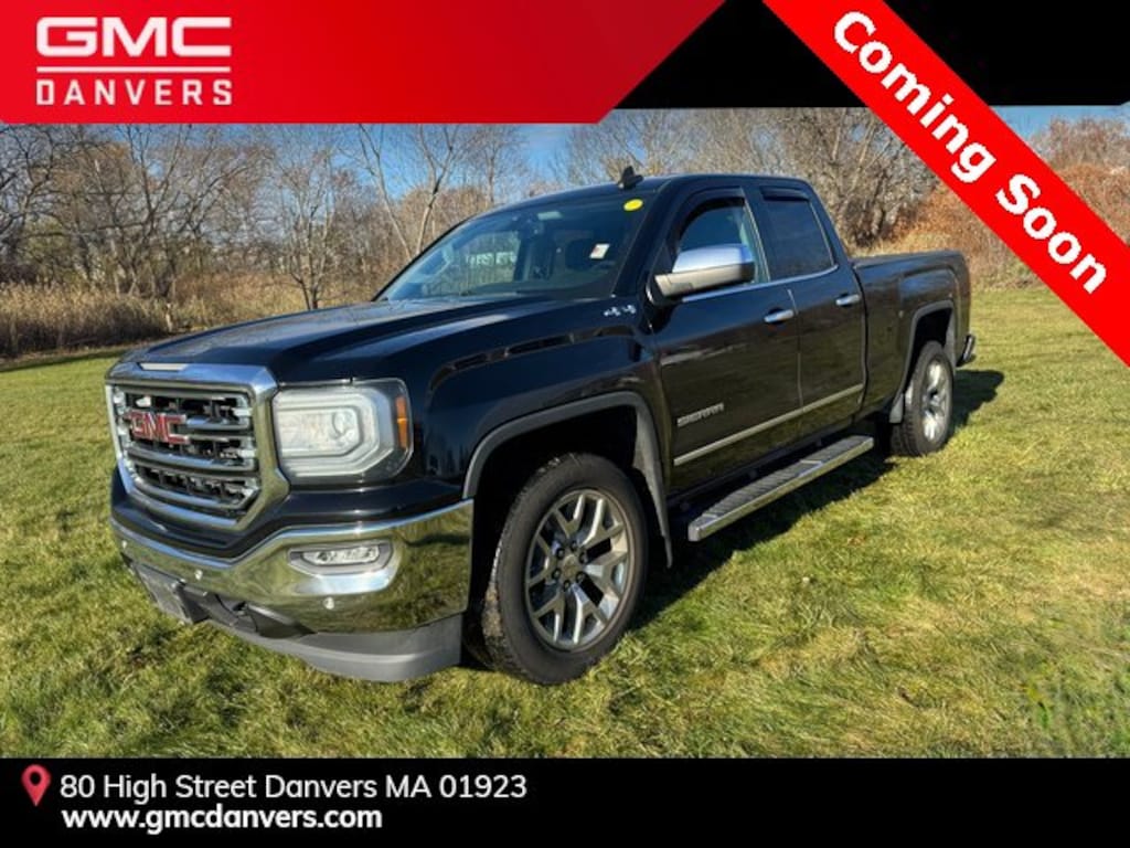 GMC Danvers is proud to present you with another True Market Priced Pre-Owned Vehicle. This 2017 GMC Sierra 1500 SLT is loaded with the following Factory Options: Preferred Equipment Group 4SA (110-Volt AC Power Outlet, 150 Amp Alternator, 1st & 2nd Row Color-Keyed Carpeted Floor Mats, 2-Speed Active Electronic AutoTrac Transfer Case, 4.2 Diagonal Color Display Driver Info Center, Auto-Dimming Inside Rear-View Mirror, Auxiliary External Transmission Oil Cooler, Chrome Bodyside Moldings, Chrome Door Handles, Chrome Mirror Caps, Color-Keyed Carpeting, Deep-Tinted Glass, Driver & Front Passenger Illuminated Vanity Mirrors, Dual-Zone Automatic Climate Control, Electric Rear-Window Defogger, EZ Lift & Lower Tailgate, Front Frame-Mounted Black Recovery Hooks, Heavy-Duty Rear Locking Differential, Leather Wrapped Steering Wheel w/Cruise Controls, LED Cargo Box Lighting, LED Tailamps w/Signature, Manual Tilt/Telescoping Steering Column, OnStar 3 Month Guidance Plan, OnStar w/4G LTE, Power Adjustable Pedals, Power Folding & Adjustable Heated Outside Mirrors, Power Windows w/Driver Express Up & Down, Rear 60/40 Folding Bench Seat (Folds Up), Rear Vision Camera, Rear Wheelhouse Liners, Remote Keyless Entry, Remote Locking Tailgate, Remote Vehicle Starter System, Single Slot CD/MP3 Player, Steering Wheel Audio Controls, Theft Deterrent System (Unauthorized Entry), Thin Profile LED Fog Lamps, and Universal Home Remote), SLT Preferred Package (Leather Wrapped Heated Steering Wheel and Power Sliding Rear Window w/Defogger), SLT Premium Package (20 x 9 Polished Aluminum Wheels and 6 Rectangular Chromed Tubular Assist Steps (LPO)), and Trailering Equipment Preferred Equipment Group 4SA (110-Volt AC Power Outlet, 150 Amp Alternator, 1st & 2nd Row Color-Keyed Carpeted Floor Mats, 2-Speed Active Electronic AutoTrac Transfer Case, 4.2 Diagonal Color Display Driver Info Center, Auto-Dimming Inside Rear-View Mirror, Auxiliary External Transmission Oil Cooler, Chrome Bodyside Moldings, Chrome Door Handles, Chrome Mirror Caps, Color-Keyed Carpeting, Deep-Tinted Glass, Driver & Front Passenger Illuminated Vanity Mirrors, Dual-Zone Automatic Climate Control, Electric Rear-Window Defogger, EZ Lift & Lower Tailgate, Front Frame-Mounted Black Recovery Hooks, Heavy-Duty Rear Locking Differential, Leather Wrapped Steering Wheel w/Cruise Controls, LED Cargo Box Lighting, LED Tailamps w/Signature, Manual Tilt/Telescoping Steering Column, OnStar 3 Month Guidance Plan, OnStar w/4G LTE, Power Adjustable Pedals, Power Folding & Adjustable Heated Outside Mirrors, Power Windows w/Driver Express Up & Down, Rear 60/40 Folding Bench Seat (Folds Up), Rear Vision Camera, Rear Wheelhouse Liners, Remote Keyless Entry, Remote Locking Tailgate, Remote Vehicle Starter System, Single Slot CD/MP3 Player, Steering Wheel Audio Controls, Theft Deterrent System (Unauthorized Entry), Thin Profile LED Fog Lamps, and Universal Home Remote), SLT Preferred Package (Leather Wrapped Heated Steering Wheel and Power Sliding Rear Window w/Defogger), SLT Premium Package (20 x 9 Polished Aluminum Wheels and 6 Rectangular Chromed Tubular Assist Steps (LPO)), Trailering Equipment, 10-Way Power Driver's Seat Adjuster, 3.08 Rear Axle Ratio, 3.42 Rear Axle Ratio, 4-Wheel Disc Brakes, 40/20/40 Front Split Bench Seat, 6 Speakers, 6-Speaker Audio System, ABS brakes, Adjustable pedals, Air Conditioning, Alloy wheels, AM/FM radio, Auto-dimming door mirrors, Auto-dimming Rear-View mirror, Automatic temperature control, Bodyside moldings, Brake assist, Bumpers: chrome, CD player, Compass, Delay-off headlights, Driver door bin, Driver vanity mirror, Dual front impact airbags, Dual front side impact airbags, Electronic Stability Control, Emergency communication system: OnStar Guidance, Exterior Parking Camera Rear, Front anti-roll bar, Front Center Armrest w/Storage, Front dual zone A/C, Front fog lights, Front License Plate Kit, Front reading lights, Front wheel independent suspension, Fully automa