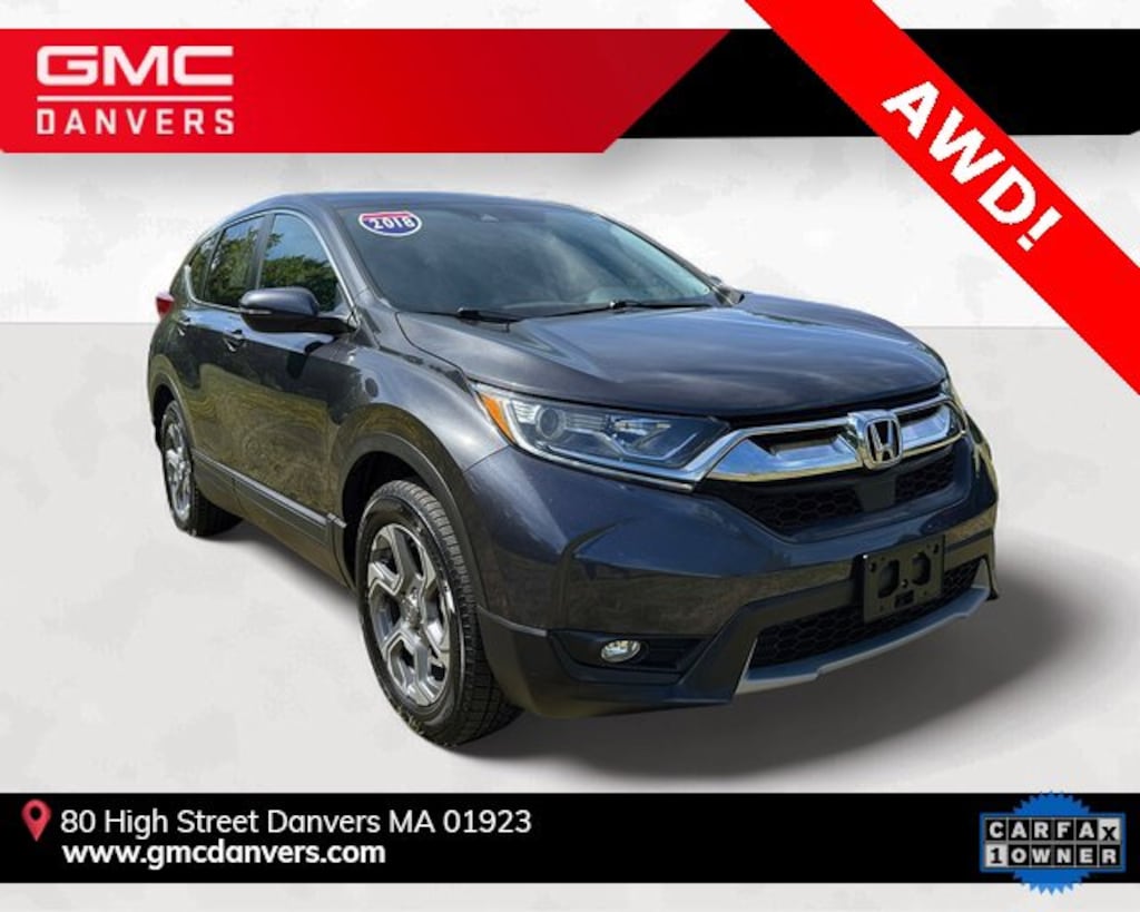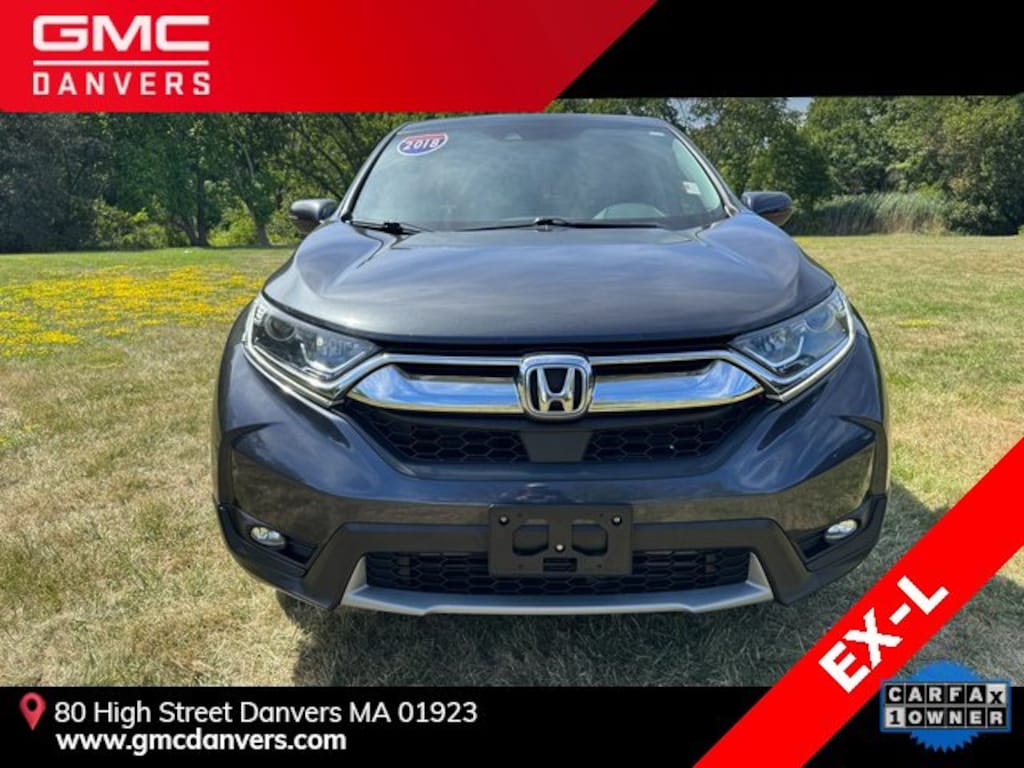 GMC Danvers is proud to present you with another True Market Priced Pre-Owned Vehicle. This 2018 Honda CR-V EX-L is loaded with the following Factory Options: 18 Alloy Wheels, 5.64 Axle Ratio, Alloy wheels, Brake assist, Electronic Stability Control, Exterior Parking Camera Rear, Panic alarm, Power Liftgate, Power moonroof, and Security system 18 Alloy Wheels, 5.64 Axle Ratio, Alloy wheels, Brake assist, Electronic Stability Control, Exterior Parking Camera Rear, Panic alarm, Power Liftgate, Power moonroof, Security system, 4-Wheel Disc Brakes, 8 Speakers, ABS brakes, Air Conditioning, AM/FM radio: SiriusXM, Apple CarPlay/Android Auto, Auto High-beam Headlights, Auto-dimming Rear-View mirror, Automatic temperature control, Blind Spot Information (BSI) System warning, Bumpers: body-color, Compass, Delay-off headlights, Driver door bin, Driver vanity mirror, Dual front impact airbags, Dual front side impact airbags, Four wheel independent suspension, Front anti-roll bar, Front Bucket Seats, Front Center Armrest, Front dual zone A/C, Front fog lights, Front reading lights, Fully automatic headlights, Garage door transmitter: HomeLink, Heated door mirrors, Heated Front Bucket Seats, Heated front seats, Illuminated entry, Leather Seat Trim, Leather Shift Knob, Low tire pressure warning, Memory seat, Occupant sensing airbag, Outside temperature display, Overhead airbag, Overhead console, Passenger door bin, Passenger vanity mirror, Power door mirrors, Power driver seat, Power passenger seat, Power steering, Power windows, Radio data system, Radio: AM/FM/SiriusXM Audio System, Rear anti-roll bar, Rear seat center armrest, Rear window defroster, Rear window wiper, Remote keyless entry, Speed control, Speed-sensing steering, Speed-Sensitive Wipers, Split folding rear seat, Spoiler, Steering wheel mounted audio controls, Tachometer, Telescoping steering wheel, Tilt steering wheel, Traction control, Trip computer, Turn signal indicator mirrors, and Variably intermittent wipers!!