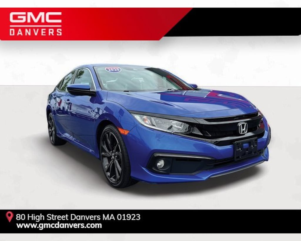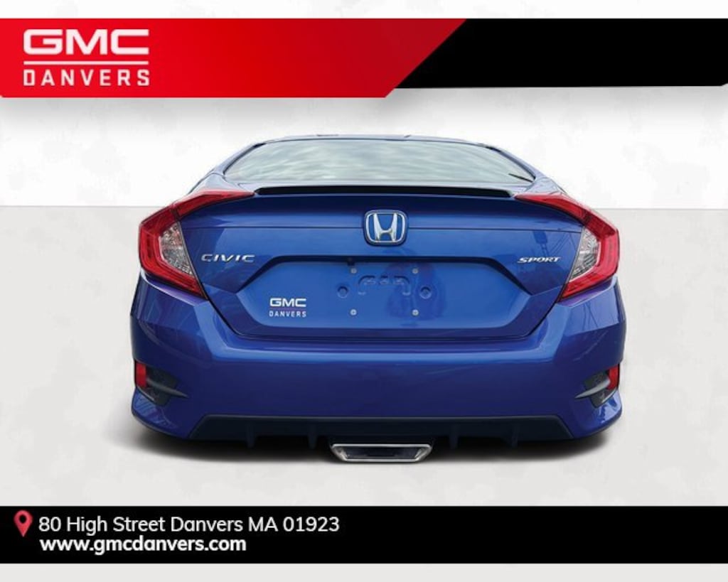 GMC Danvers is proud to present you with another True Market Priced Pre-Owned Vehicle. This 2020 Honda Civic Sport is loaded with the following Factory Options: Alloy wheels, Power steering, Power windows, Remote keyless entry, Steering wheel mounted audio controls, and Wheels: 18 Alloy w/Gloss Black Inserts Alloy wheels, Power steering, Power windows, Remote keyless entry, Steering wheel mounted audio controls, Wheels: 18 Alloy w/Gloss Black Inserts, 4-Wheel Disc Brakes, 8 Speakers, ABS brakes, Adaptive Cruise Control: Adaptive Cruise Control (ACC) with Low-Speed Follow, Air Conditioning, AM/FM radio, Apple CarPlay/Android Auto, Auto High-beam Headlights, Automatic temperature control, Brake assist, Bumpers: body-color, Cloth Seat Trim, Delay-off headlights, Driver door bin, Driver vanity mirror, Dual front impact airbags, Dual front side impact airbags, Electronic Stability Control, Emergency communication system: HondaLink, Exterior Parking Camera Rear, Forward collision: Collision Mitigation Braking System (CMBS) + FCW mitigation, Four wheel independent suspension, Front anti-roll bar, Front Bucket Seats, Front Center Armrest, Front fog lights, Front reading lights, Fully automatic headlights, Illuminated entry, Lane departure: Lane Keeping Assist System (LKAS) active, Leather Shift Knob, Low tire pressure warning, Occupant sensing airbag, Outside temperature display, Overhead airbag, Panic alarm, Passenger door bin, Passenger vanity mirror, Power door mirrors, Radio data system, Radio: 180-Watt AM/FM Audio System, Rear anti-roll bar, Rear window defroster, Security system, Speed control, Speed-sensing steering, Split folding rear seat, Spoiler, Tachometer, Telescoping steering wheel, Tilt steering wheel, Traction control, and Trip computer!!