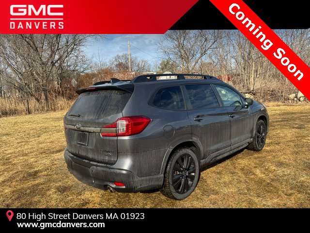 GMC Danvers is proud to present you with another True Market Priced Pre-Owned Vehicle. This 2022 Subaru Ascent Onyx Edition is loaded with the following Factory Options: PMR + Navi + TC (Cargo Area Cover, Dual Glass Panoramic Power Moonroof, and Radio: Subaru STARLINK 8.0 Multimedia Nav System), Alloy wheels, Axle Ratio: 4.44, Heated door mirrors, Heated steering wheel, Panic alarm, Power door mirrors, Power Liftgate, Rear window wiper, Security system, STARLINK/Apple CarPlay/Android Auto, Tilt steering wheel, and Wheels: 20 x 7.5 J Black Finish Alloy PMR + Navi + TC (Cargo Area Cover, Dual Glass Panoramic Power Moonroof, and Radio: Subaru STARLINK 8.0 Multimedia Nav System), Alloy wheels, Axle Ratio: 4.44, Heated door mirrors, Heated steering wheel, Panic alarm, Power door mirrors, Power Liftgate, Rear window wiper, Security system, STARLINK/Apple CarPlay/Android Auto, Tilt steering wheel, Wheels: 20 x 7.5 J Black Finish Alloy, 3rd row seats: bench, 4-Wheel Disc Brakes, 6 Speakers, ABS brakes, Air Conditioning, AM/FM radio: SiriusXM, Auto High-beam Headlights, Auto-Dimming Mirror w/Compass & HomeLink, Auto-dimming Rear-View mirror, Automatic temperature control, Brake assist, Bumpers: body-color, CD player, Compass, Delay-off headlights, Driver door bin, Driver vanity mirror, Dual front impact airbags, Dual front side impact airbags, Electronic Stability Control, Emergency communication system: STARLINK Safety and Security (Subscription Required), Exterior Parking Camera Rear, Four wheel independent suspension, Front anti-roll bar, Front Bucket Seats, Front Center Armrest, Front dual zone A/C, Front fog lights, Front reading lights, Fully automatic headlights, Garage door transmitter: HomeLink, Heated Front Bucket Seats, Heated front seats, Illuminated entry, Knee airbag, Low tire pressure warning, Occupant sensing airbag, Outside temperature display, Overhead airbag, Overhead console, Passenger door bin, Passenger vanity mirror, Power driver seat, Power steering, Power windows, Radio data system, Radio: Subaru STARLINK 8.0 Multimedia Plus System, Rear air conditioning, Rear anti-roll bar, Rear reading lights, Rear window defroster, Reclining 3rd row seat, Remote keyless entry, Speed control, Split folding rear seat, Spoiler, StarTex Upholstery, Steering wheel mounted audio controls, Tachometer, Telescoping steering wheel, Traction control, Trip computer, and Variably intermittent wipers!!