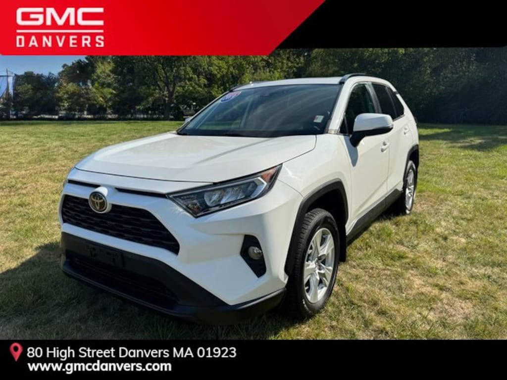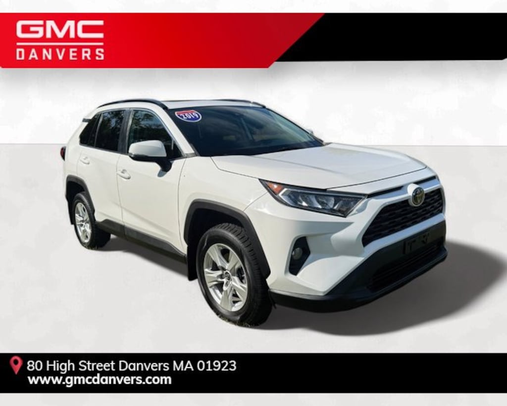 GMC Danvers is proud to present you with another True Market Priced Pre-Owned Vehicle. This 2019 Toyota RAV4 XLE is loaded with the following Factory Options: 17 x 7.0J Alloy Wheels, 4-Wheel Disc Brakes, 6 Speakers, ABS brakes, Air Conditioning, Alloy wheels, AM/FM radio, Apple CarPlay, Auto High-beam Headlights, Automatic temperature control, Axle Ratio: 3.177, Brake assist, Bumpers: body-color, Delay-off headlights, Driver door bin, Driver vanity mirror, Dual front impact airbags, Dual front side impact airbags, Electronic Stability Control, Emergency communication system: Entune Safety Connect, Exterior Parking Camera Rear, Fabric Seat Trim, Four wheel independent suspension, Front anti-roll bar, Front Bucket Seats, Front Center Armrest, Front dual zone A/C, Front fog lights, Front reading lights, Fully automatic headlights, Heated door mirrors, Illuminated entry, Knee airbag, Low tire pressure warning, Occupant sensing airbag, Outside temperature display, Overhead airbag, Overhead console, Panic alarm, Passenger door bin, Passenger vanity mirror, Power door mirrors, Power moonroof, Power steering, Power windows, Radio data system, Radio: Entune 3.0 Audio, Rear anti-roll bar, Rear seat center armrest, Rear window defroster, Rear window wiper, Remote keyless entry, Roof rack: rails only, Speed control, Speed-sensing steering, Split folding rear seat, Spoiler, Steering wheel mounted audio controls, Tachometer, Telescoping steering wheel, Tilt steering wheel, Traction control, Trip computer, Turn signal indicator mirrors, and Variably intermittent wipers!!