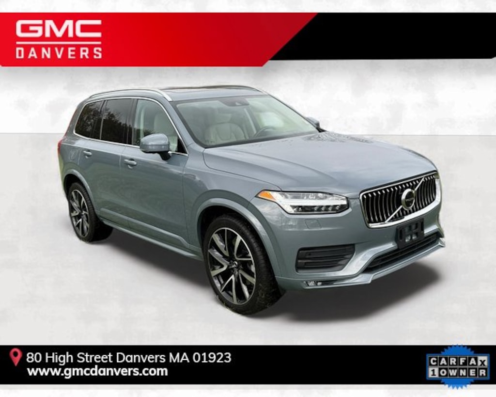 GMC Danvers is proud to present you with another True Market Priced Pre-Owned Vehicle. This 2022 Volvo XC90 T6 Momentum is loaded with the following Factory Options: Advanced Package (360 Surround View Camera, Air Purifier, Graphical Head-Up Display, and Interior High Level Illumination), Climate Package (Headlight High Pressure Cleaning, Heated Rear Seats, and Heated Steering Wheel), 10 Speakers, Alloy wheels, AM/FM radio: SiriusXM, Apple CarPlay/Android Auto, Heated Front Bucket Seats, Navigation system: Sensus Navigation, Power door mirrors, Power passenger seat, and Wheels: 19 6-Spoke Turbine Sparkling Silver Alloy Advanced Package (360 Surround View Camera, Air Purifier, Graphical Head-Up Display, and Interior High Level Illumination), Climate Package (Headlight High Pressure Cleaning, Heated Rear Seats, and Heated Steering Wheel), 10 Speakers, Alloy wheels, AM/FM radio: SiriusXM, Apple CarPlay/Android Auto, Heated Front Bucket Seats, Navigation system: Sensus Navigation, Power door mirrors, Power passenger seat, Wheels: 19 6-Spoke Turbine Sparkling Silver Alloy, 3rd row seats: bucket, 4-Wheel Disc Brakes, ABS brakes, Air Conditioning, Anti-whiplash front head restraints, Auto High-beam Headlights, Auto-dimming door mirrors, Auto-dimming Rear-View mirror, Automatic temperature control, Brake assist, Bumpers: body-color, Delay-off headlights, Driver door bin, Driver vanity mirror, Dual front impact airbags, Dual front side impact airbags, Electronic Stability Control, Emergency communication system: Volvo Cars App w/4 Year Subscription, Exterior Parking Camera Rear, Four wheel independent suspension, Front anti-roll bar, Front Bucket Seats, Front Center Armrest w/Storage, Front dual zone A/C, Front fog lights, Front reading lights, Fully automatic headlights, Garage door transmitter: HomeLink, Genuine wood dashboard insert, Genuine wood door panel insert, Heated door mirrors, Heated front seats, Illuminated entry, Knee airbag, Leather Shift Knob, Leather Upholstery, Low tire pressure warning, Memory seat, Occupant sensing airbag, Outside temperature display, Overhead airbag, Panic alarm, Passenger door bin, Passenger vanity mirror, Power driver seat, Power moonroof, Power steering, Power windows, Premium audio system: Sensus Connect, Radio data system, Radio: High Performance Audio System, Rain sensing wipers, Rear air conditioning, Rear anti-roll bar, Rear dual zone A/C, Rear fog lights, Rear reading lights, Rear seat center armrest, Rear window defroster, Rear window wiper, Remote keyless entry, Security system, Speed control, Speed-sensing steering, Split folding rear seat, Spoiler, Steering wheel mounted audio controls, Tachometer, Telescoping steering wheel, Tilt steering wheel, Traction control, Trip computer, Turn signal indicator mirrors, and Variably intermittent wipers!!Don't wait. Contact GMC Danvers today online or call 978.774.0040 to confirm availability and schedule your test drive today.